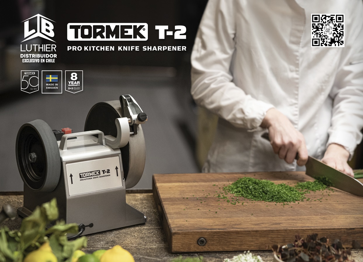 Con más de 50 años de experiencia en afilado, la prestigiosa marca Tormek® de Suecia ha desarrollado un nuevo modelo de máquina exclusiva para afilado de cuchillos, Tormek T-2 Pro especialmente diseñado para satisfacer la demanda profesional de afilado en el rubro de la gastronomia.