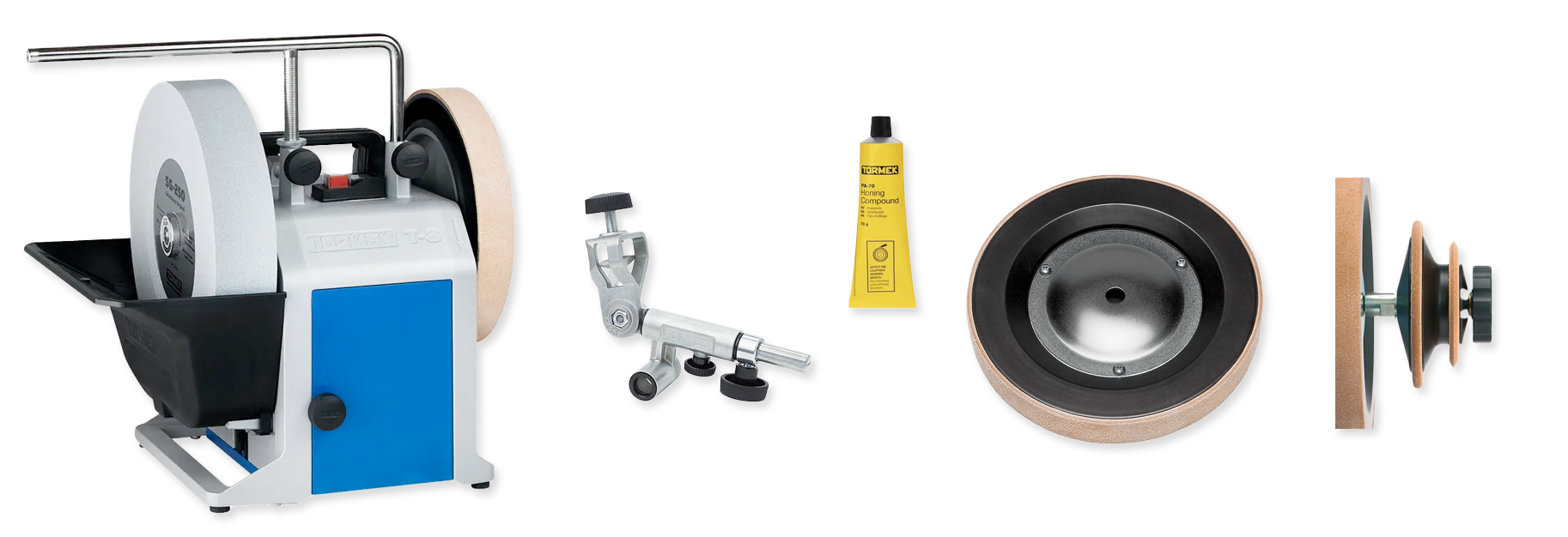 • Tormek T-8 con piedra SG-250 y los accesorios que incluye
