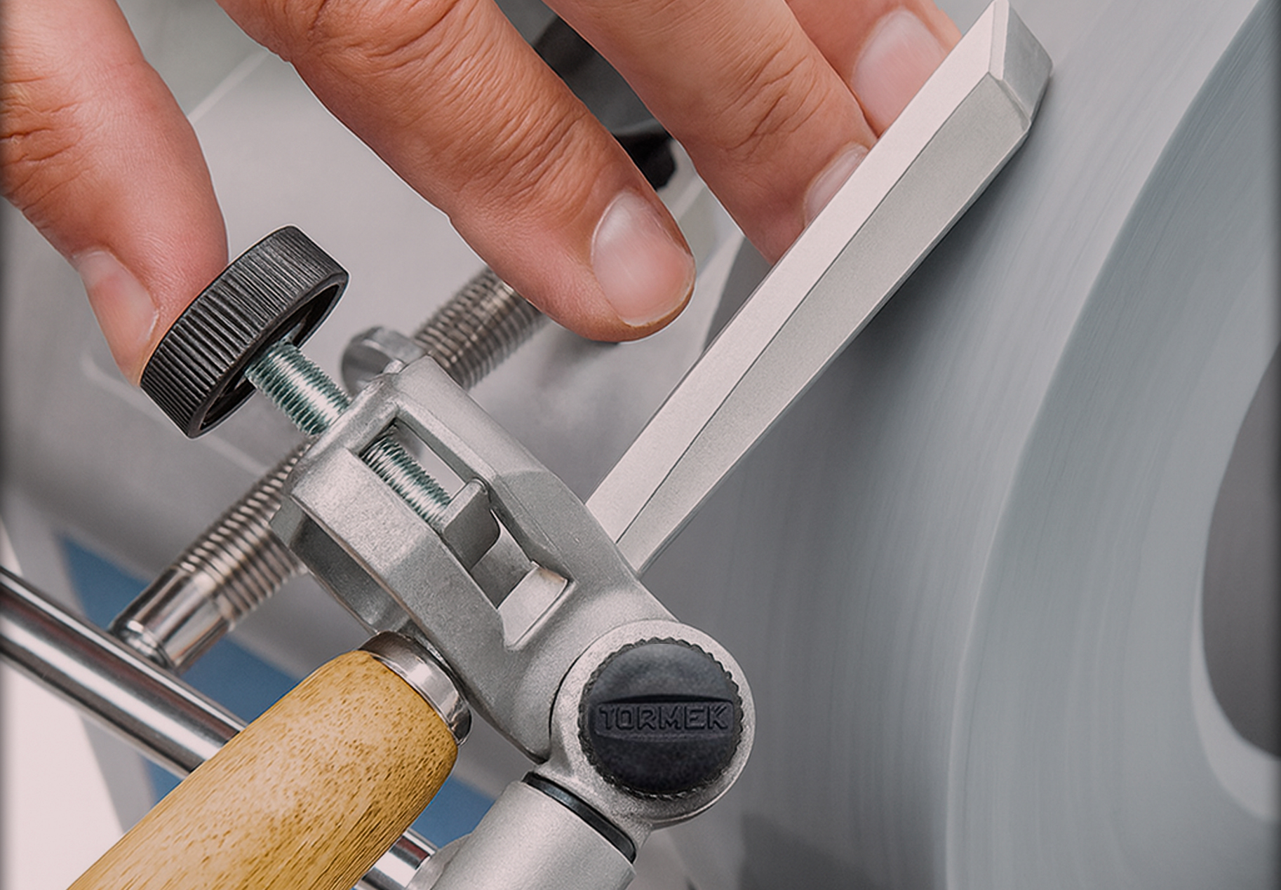 Con la Tormek T-8, agua y la SVD-186 R bien ajustada, el acero revive y el filo renace.
