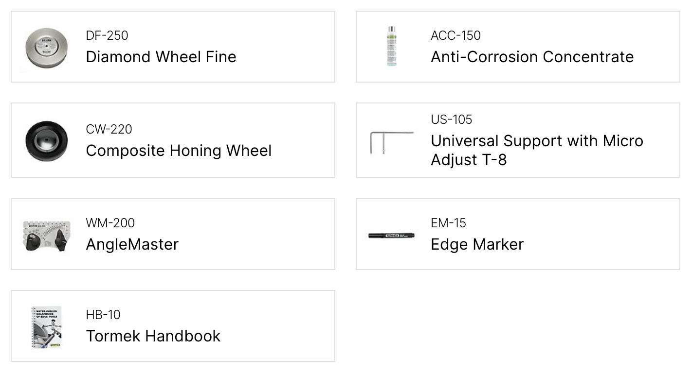 Igual pero diferente El Tormek T-8 es el verdadero sistema de afilado refrigerado por agua original. En muchos sentidos, es lo mismo que las técnicas de afilado de siglos de antigüedad. Tiene una muela abrasiva giratoria y redonda. Gira a bajas RPM. Funciona con agua. Unas funciones simples que garantizan la retención y calidad de sus herramientas.