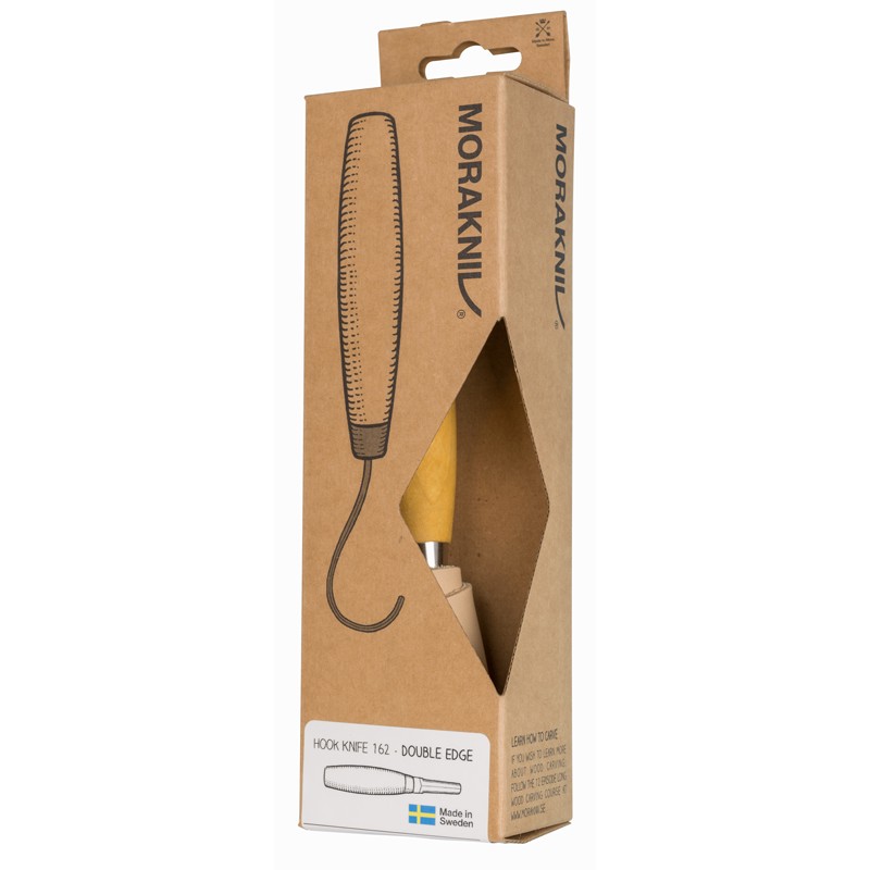 Cuchillo de Gancho Hook Knife Morakniv para Tallado en Madera 162 + Estuche de Cuero Original Morakniv Suecia Doble Bisel / Dominio de la Mano: Zurdo y Diestro