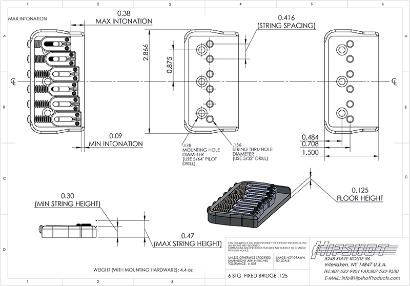 • Altura .125", diseñado para una acción perfecta en guitarras con cuellos no angulados y de bajo perfil.
