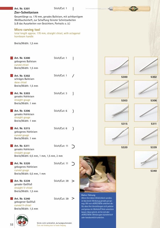 Antes de guardar las herramientas, humedezca la hoja con un paño ligeramente empapado en aceite (aceite blanco o nuestro art. nº 3708000). Con estos simples pasos de cuidado, podrás disfrutar de tus gubias durante muchos años, manteniendo su calidad y rendimiento intactos.