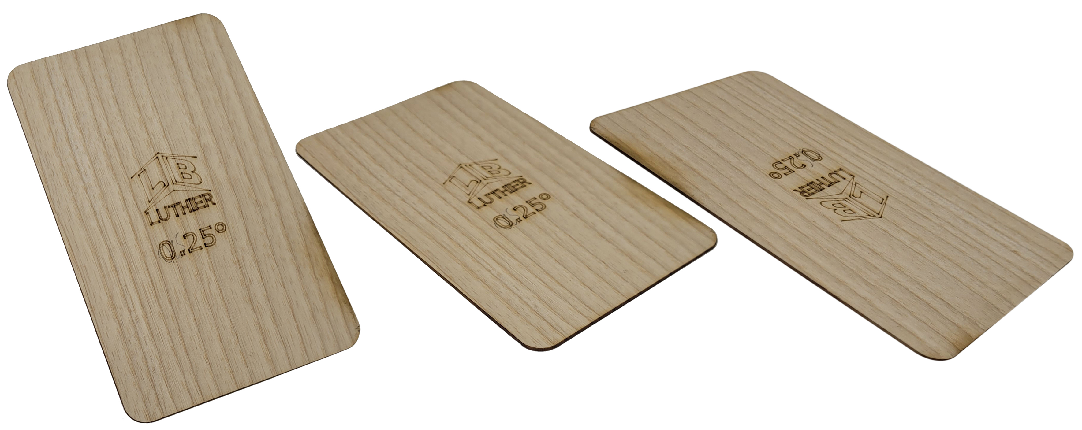Es muy común el uso de láminas, galgas, uñetas, golillas u otro tipo de objetos para lograr dicho objetivo, pero esto tiende a generar un vacío en la zona de apoyo del brazo con el encastre evitando una unión óptima entre ambos componentes. Con el uso de los neck shims, podemos cambiar el ángulo del mástil de nuestro instrumento con un suplemento en ángulo que garantiza una zona de contacto óptima y completa entre el mástil y el encastre.